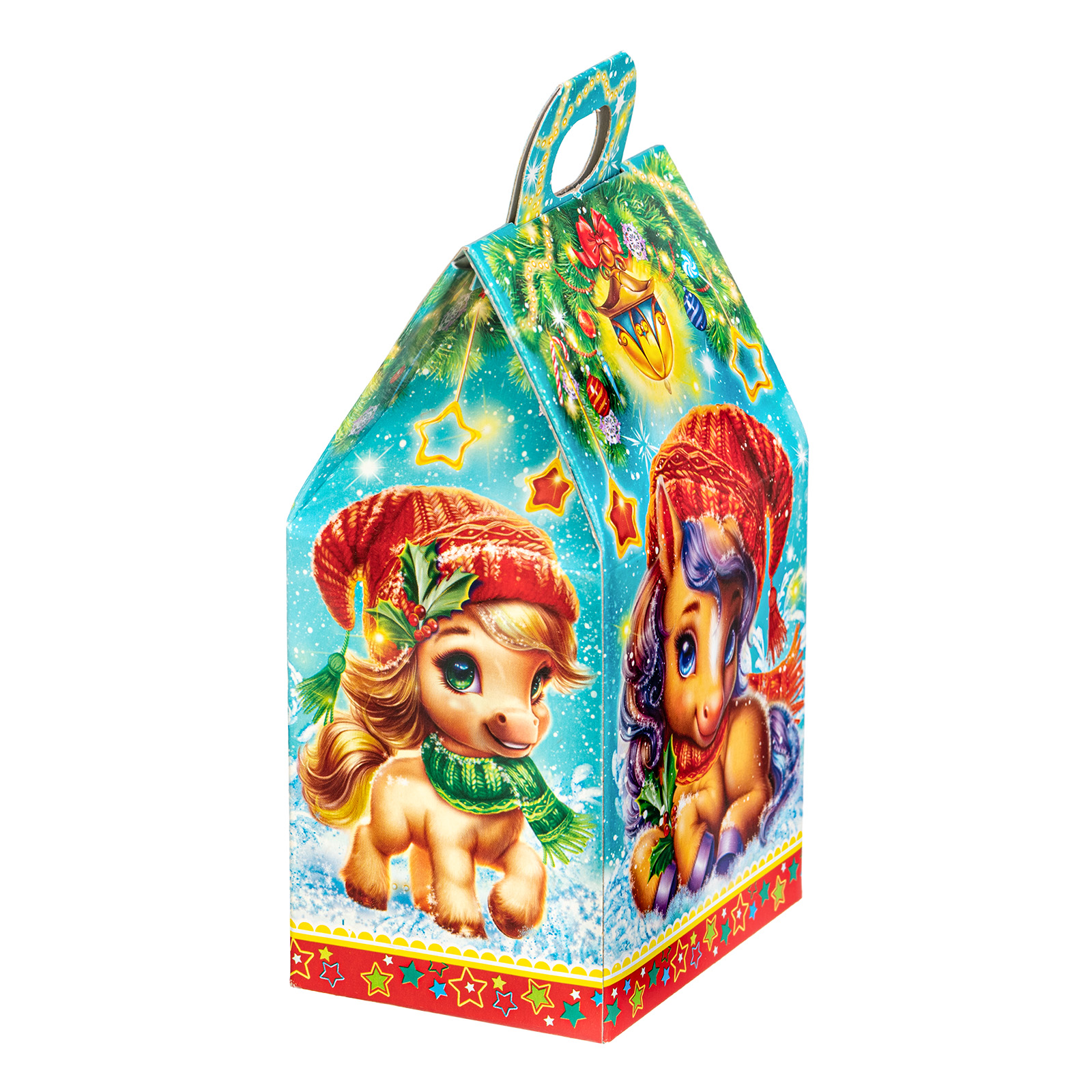 Несмотря на небольшой размер, новогодний сладкий подарок “Шалунишки” способен вызвать неподдельный восторг у маленьких сластен. В его состав входит 200 грамм разнообразных вкусных сладостей с мягкой начинкой и небольшой памятный сувенир-магнитик. Все это бережно помещено в небольшую картонную коробочку с изображением символов наступающего года - милых волшебных лошадок. Этот небольшой набор станет прекрасным выбором, если вы ищете новогодние сладкие подарки для утренника в детском саду - малыши точно останутся довольны!